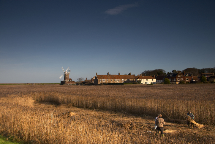 Gathering thatch reeds in Norfolk, England