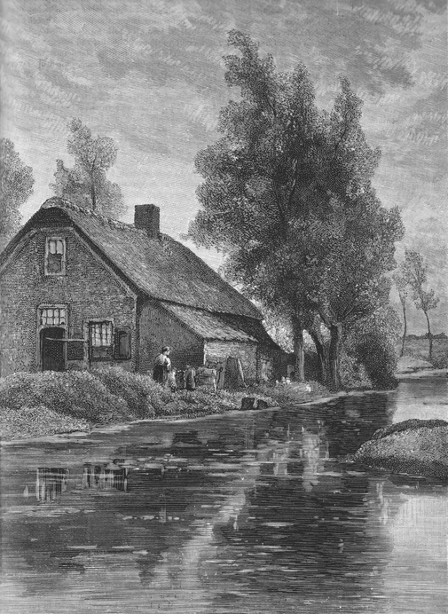 Victorian black and white engraving of a typical English thatch; 19th century rural life; Taken from the Quiver 1888