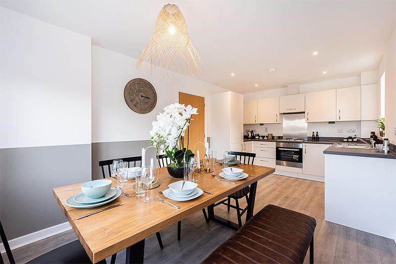 With a show home opening at the end of this month and the first homes scheduled for completion in July, there will be a choice of two-, three- and four-bedroom properties where the buyer purchasers a share (as little as 40%) and pays a subsidised rent on the remainder. Over time, they can ‘staircase’ by purchasing further shares until they own 100%.