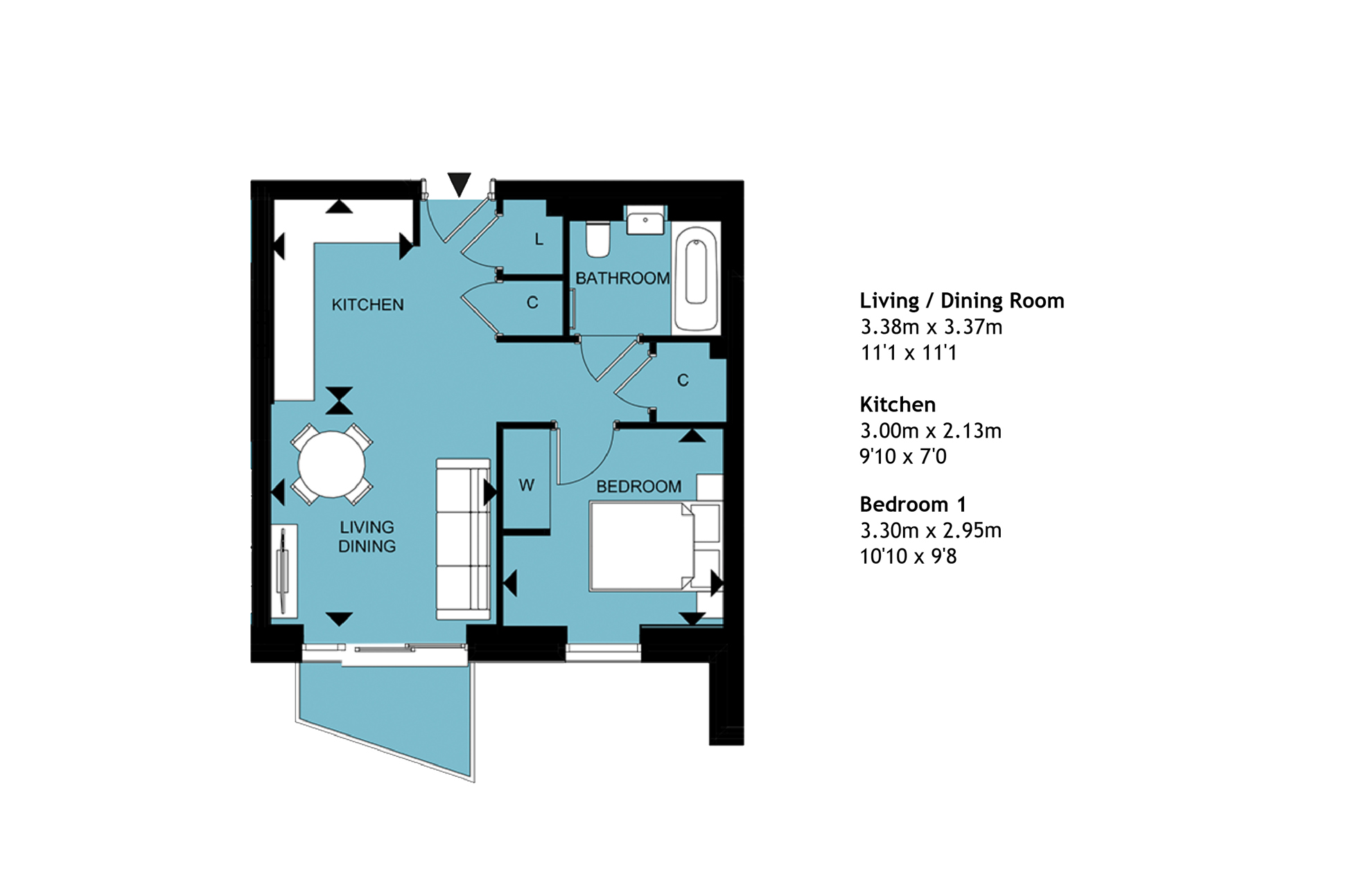 Featuring an open-plan living area with a sliding door to your balcony. The kitchen is fitted with an oven, induction hob and extractor fan, and has a built-in fridge/freezer and dishwasher.