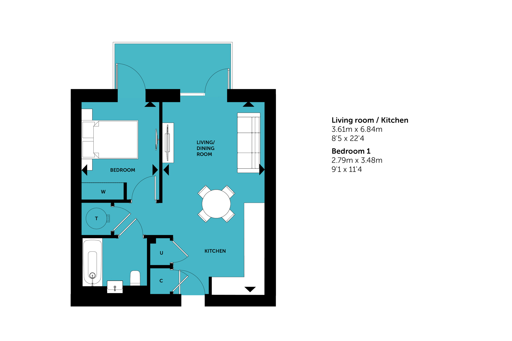 There`s a comfortable double bedroom with a fitted wardrobe and the bathroom has a modern, white suite with a built-in vanity drawer under the sink
