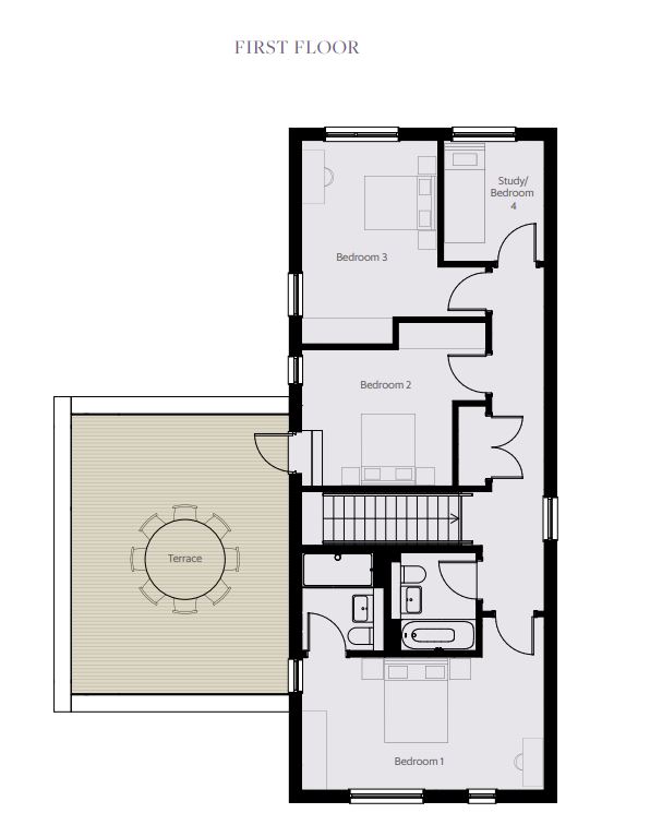 Bedroom 2 leads to an exquisite balcony for additional outside space which catches the sun for most of the day and reaches along the side of the house. The property benefits from 3 double bedrooms, with an en-suite to bedroom 1, a versatile 4th room which could be used as bedroom or home office, a study to the ground floor and two parking spaces.