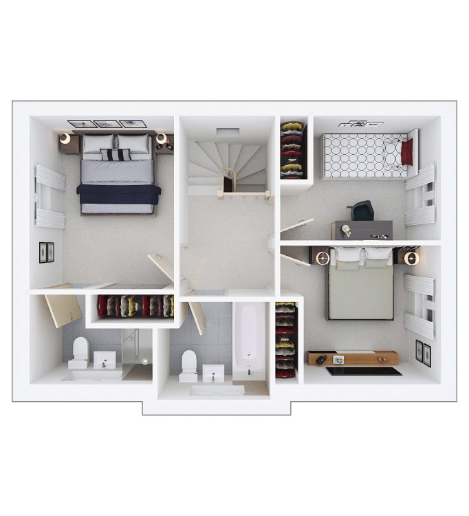 The separate kitchen/dining area is a culinary dream, with a fitted designer kitchen and French doors leading from the dining area to the rear garden. Integrated white goods are included as standard with Allanwater Homes. There is also a convenient downstairs WC in the hallway.