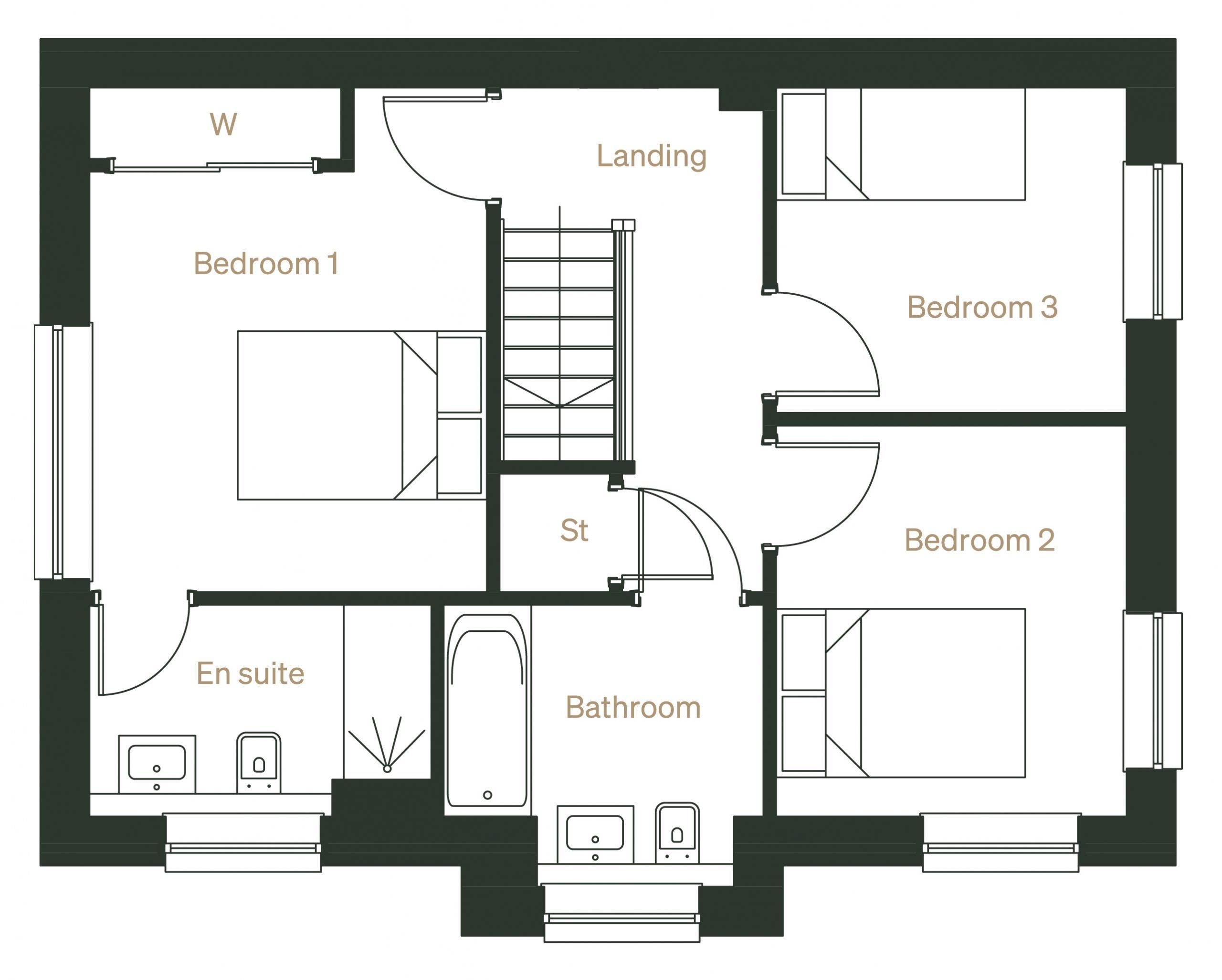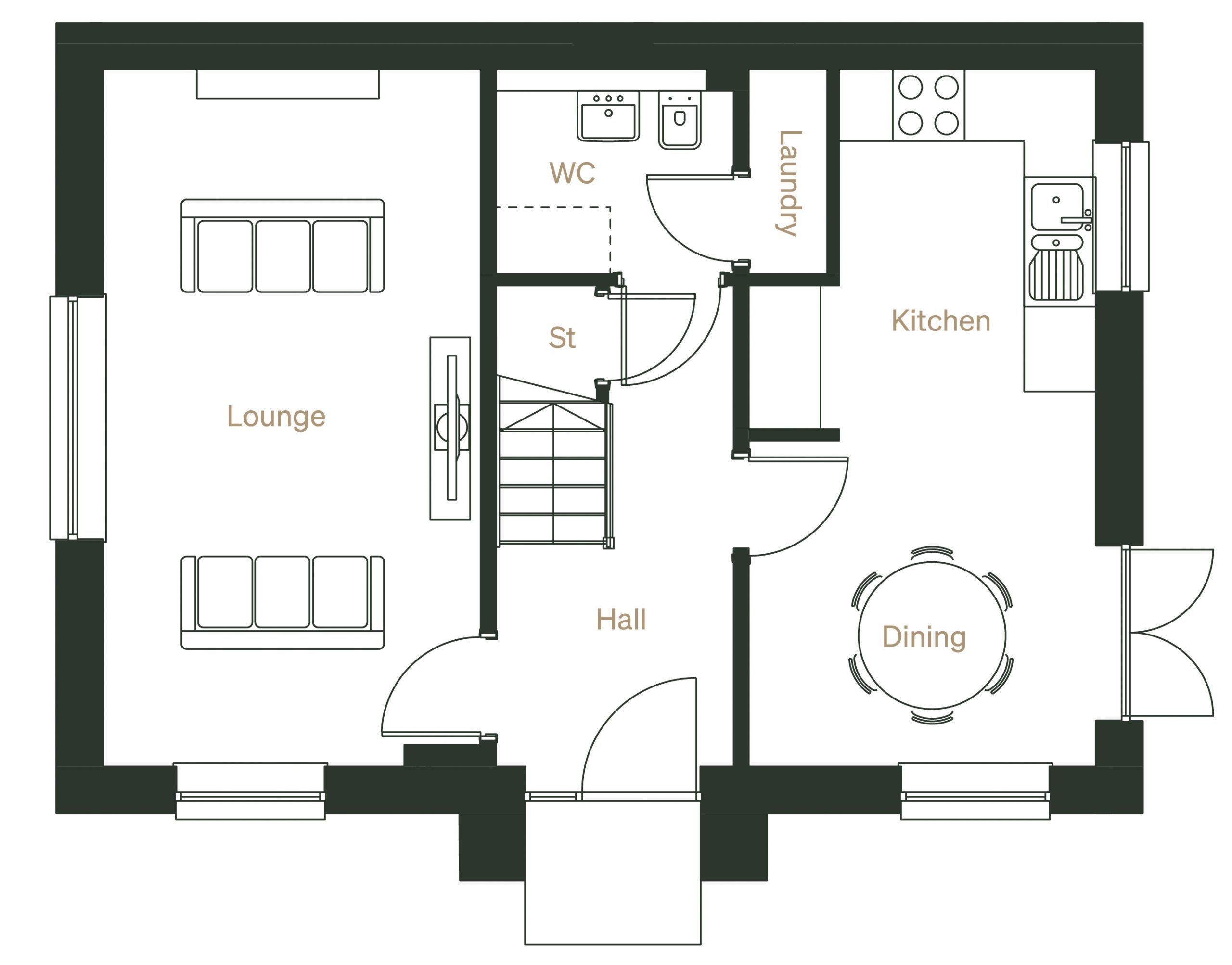 The Milne offers a stylish and functional three bedroom semi-detached family home set across two floors. With a central front entrance, the ground floor of this beautiful home offers a modern, versatile layout with a bright and spacious double aspect lounge, spanning the full depth of the house. Oversized windows throughout the ground floor ensure maximum light floods in. The open plan kitchen/dining is enhanced by French doors leading directly to the private, fenced back garden.