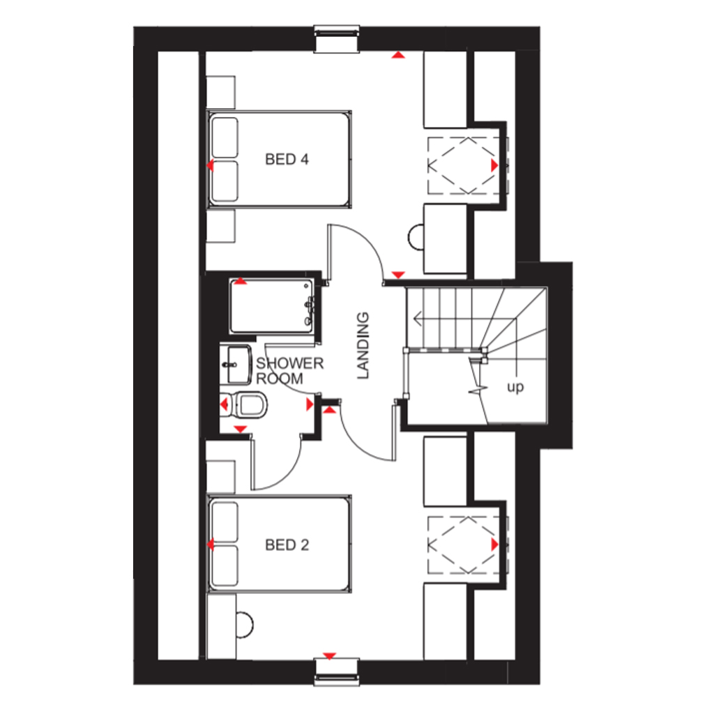 PLOT 195 THE HESKETH AT WILLOW GROVE -This three storey, detached four bedroom home includes an open plan kitchen with French doors onto the garden. A spacious lounge, cloakroom and handy storage space complete the ground floor. On the first floor you`ll find an en suite main bedroom, a further double bedroom and a family bathroom. There are two more double bedrooms and a shower room on the top floor. This home includes a range of energy-efficient features including solar PV panels and more.