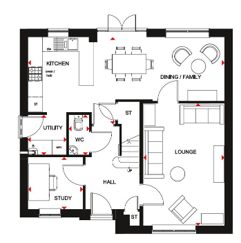 The Maidstone is a 3 bedroom home available at Willow Grove .This home offers an open-plan kitchen and dining area with French doors opening onto the rear garden.