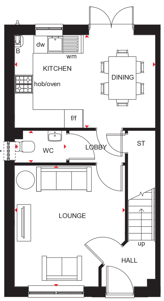 DETACHED GARAGE | DRIVEWAY FOR 2 CARS | BUY NEW AND PERSONALISE The 3 bedroom Ellerton features a large window to the front of the lounge, allowing lots of natural light.The open-plan kitchen with dining space includes French doors that lead out to the rear garden and provides a great space for entertaining by allowing for the indoors and out to flow seamlessly. Upstairs the main bedroom features an en suite, plus 2 additional bedrooms and a main bathroom.