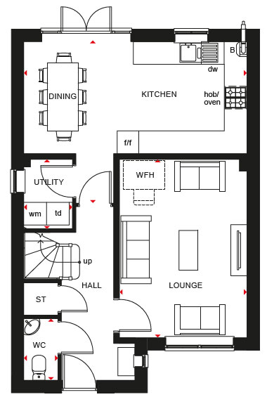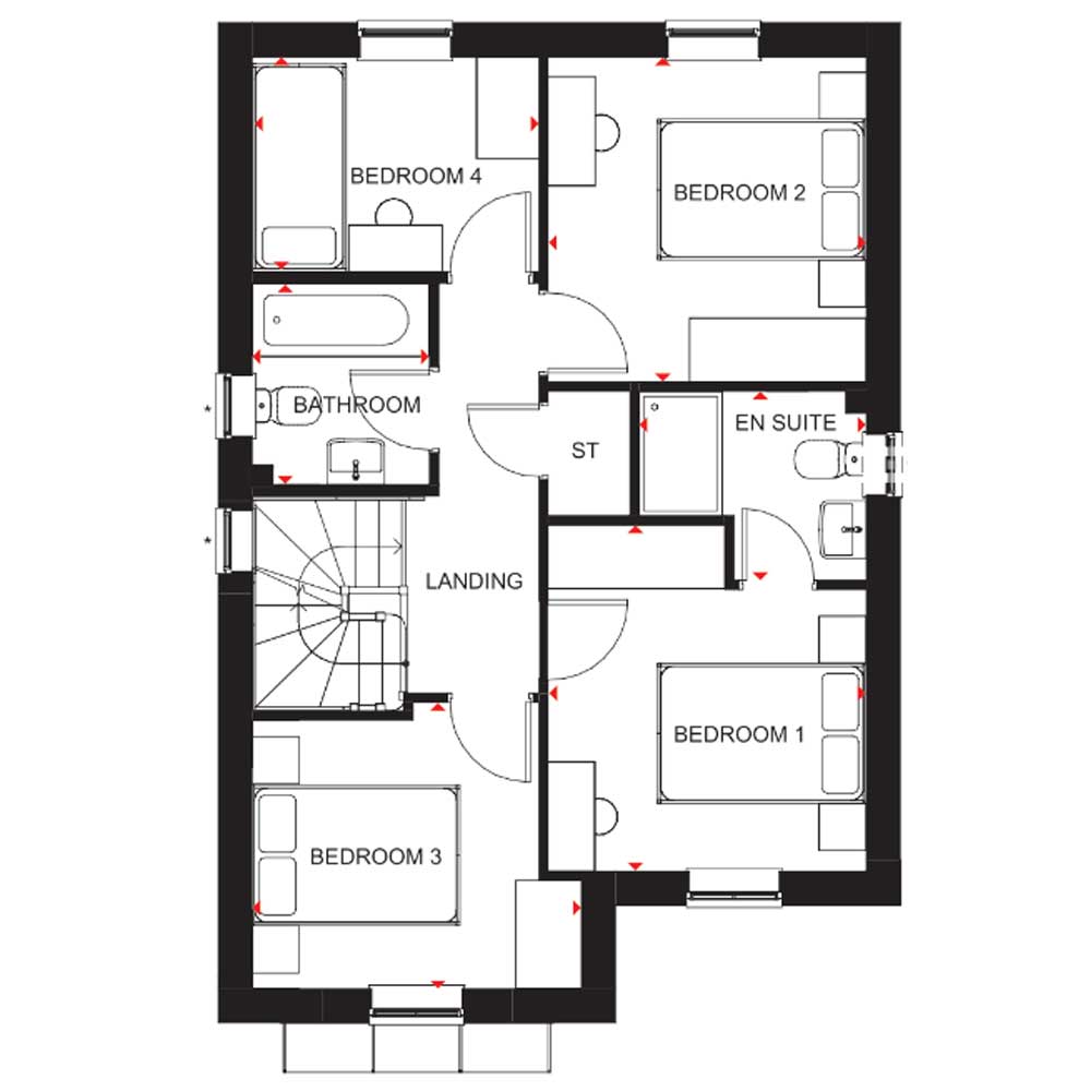 PLOT 363 -THE KINGLSEY AT HAMPTON BEACH - This stunning 4 bedroom detached home, features an open-plan dining kitchen with French doors leading to the garden. A handy utility cupboard and a separate lounge completes the ground floor. Upstairs, you`ll find the main bedroom with en suite, a further 2 double bedrooms and a single bedroom which could provide an adaptable work from home space. A family bathroom completes the floor. This home includes a range of energy-efficient features including solar PV panels and more.