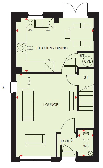 PLOT 116 THE MORESBY AT WHITTLESEY LAKESIDE - The ground floor of the Moresby features a spacious dual-aspect lounge and an open-plan kitchen with dining area and French doors that open out onto the ...