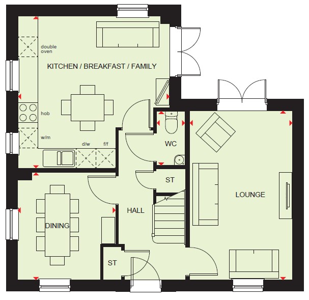 PLOT 116 THE MORESBY AT WHITTLESEY LAKESIDE - The ground floor of the Moresby features a spacious dual-aspect lounge and an open-plan kitchen with dining area and French doors that open out onto the ...