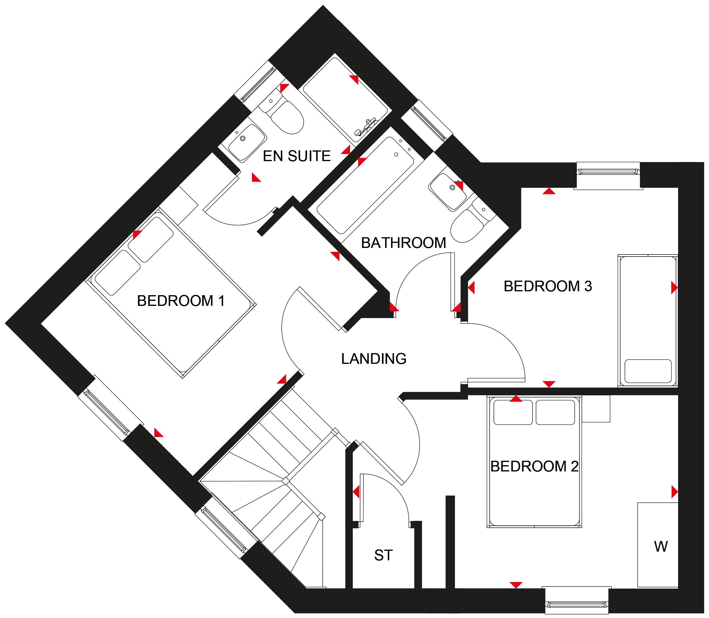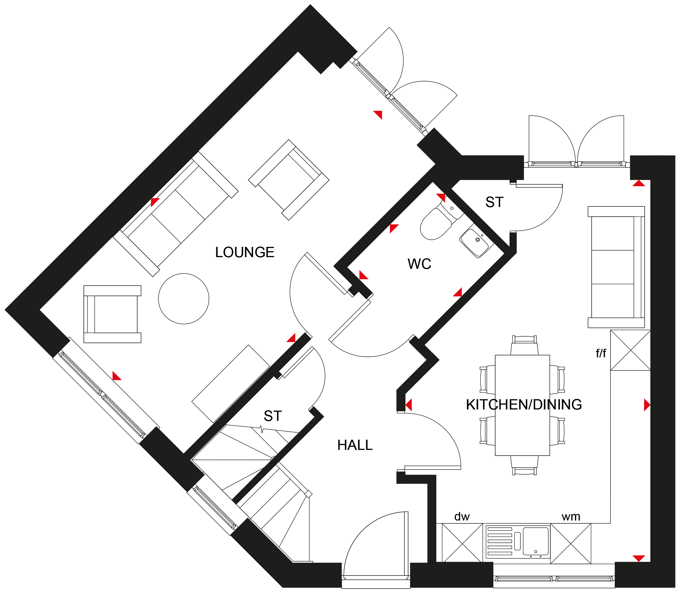 The Ancona is a spacious family home. Bright and flexible areas to enjoy modern-day living. FRENCH DOORS open onto the rear garden from both the DUAL-ASPECT LOUNGE and the OPEN-PLAN KITCHEN with dining area. Galleried landing leads to two double bedrooms - the main bedroom with EN SUITE - a single bedroom and the FAMILY BATHROOM.