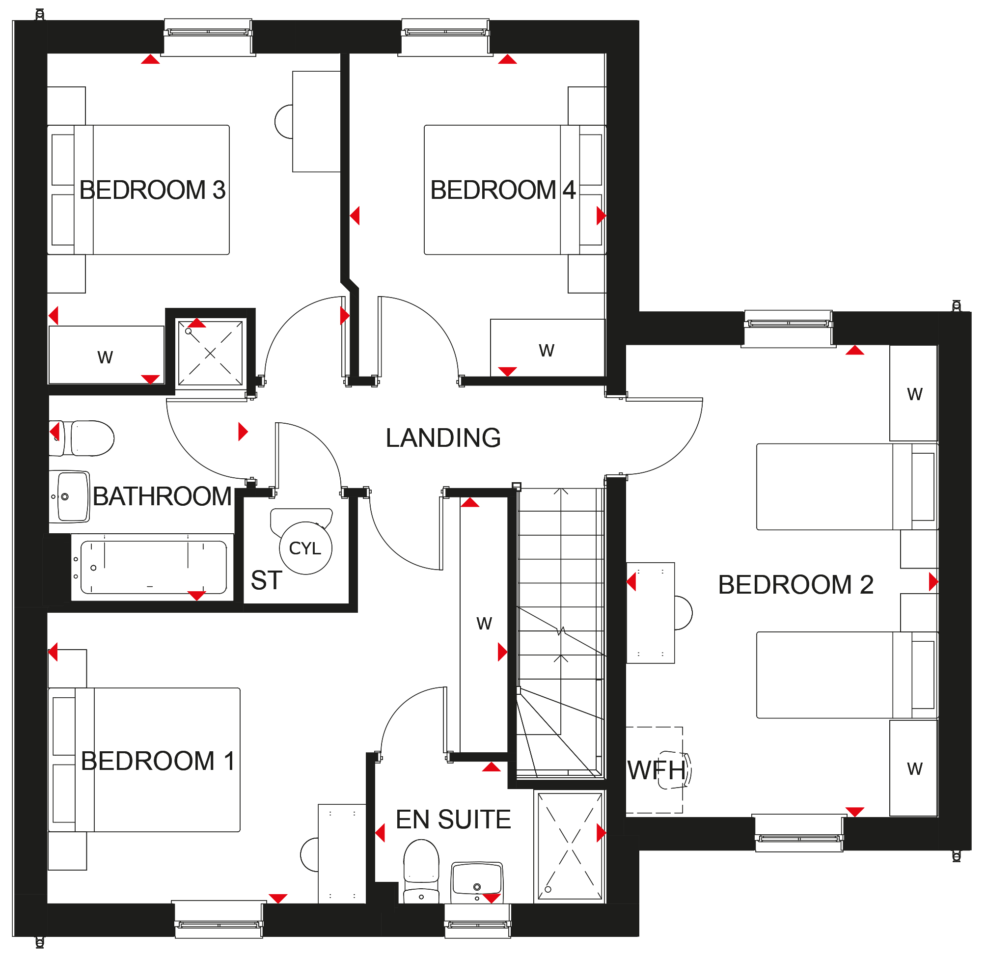 • Four double bedrooms