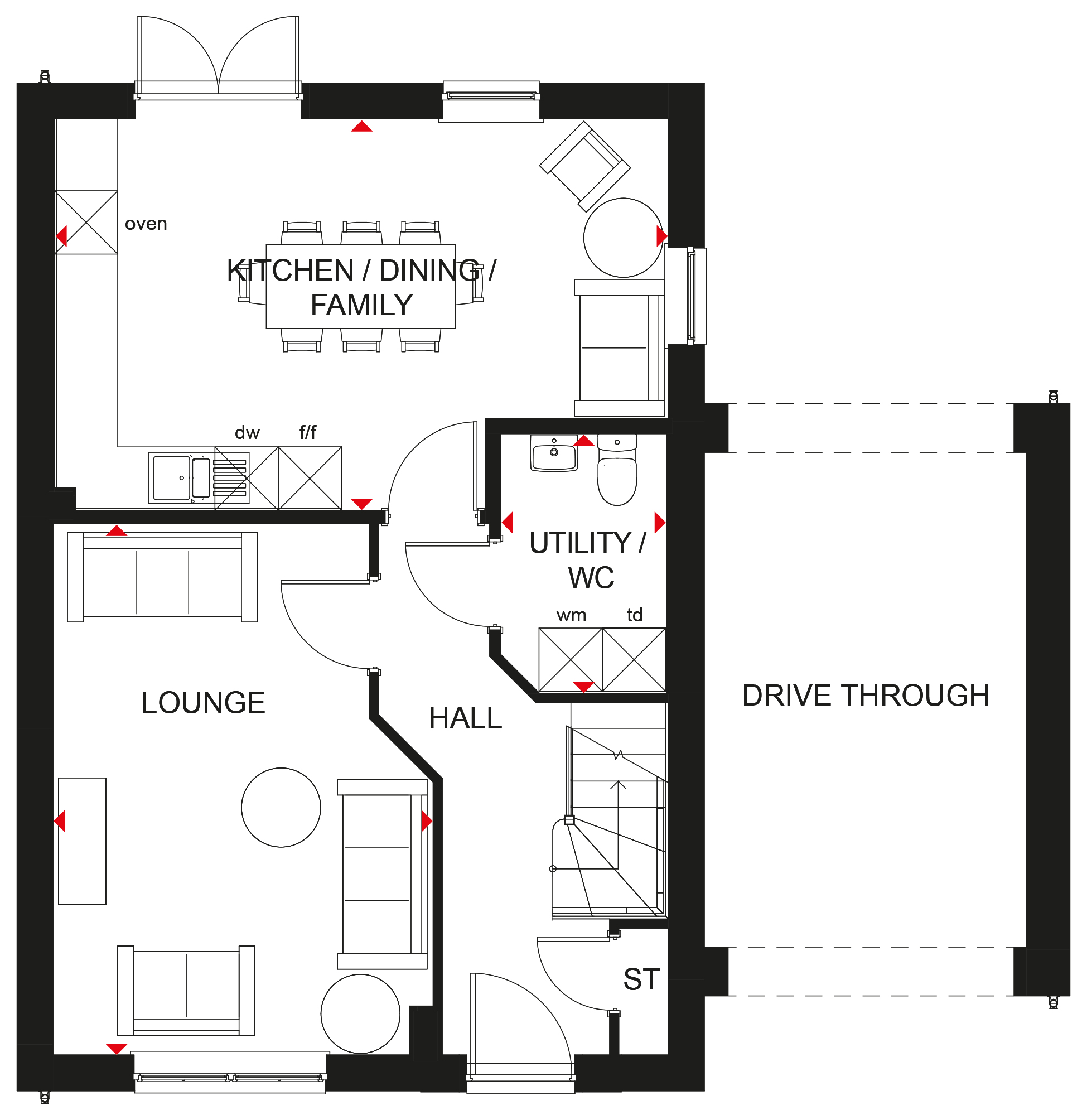 VISIT OUR SHOW HOME | The Riggit features oversized windows and FRENCH DOORS making the ground floor bright and airy. The large OPEN-PLAN KITCHEN with dining area is a great space to spend meal times together. Upstairs you will find FOUR DOUBLE BEDROOMS, with en suite to the main bedroom and a family bathroom.