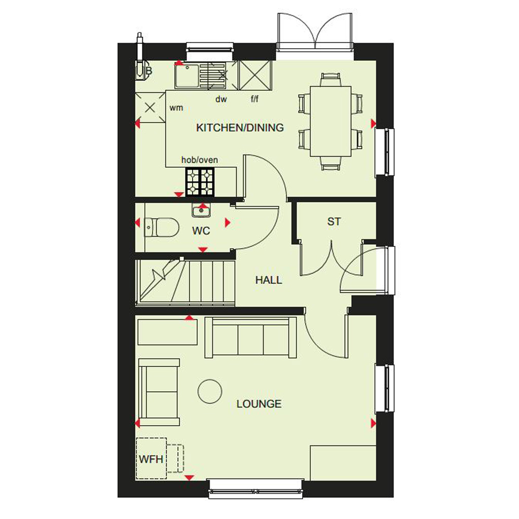 The Moresby is a spacious, energy-efficient home. Downstairs, you will discover an OPEN-PLAN KITCHEN and dining area with FRENCH DOORS leading to the rear garden and a spacious lounge. Heading upstairs, there are two double bedrooms, the main with EN SUITE SHOWER ROOM, along with a single bedroom or HOME OFFICE and a FAMILY BATHROOM.