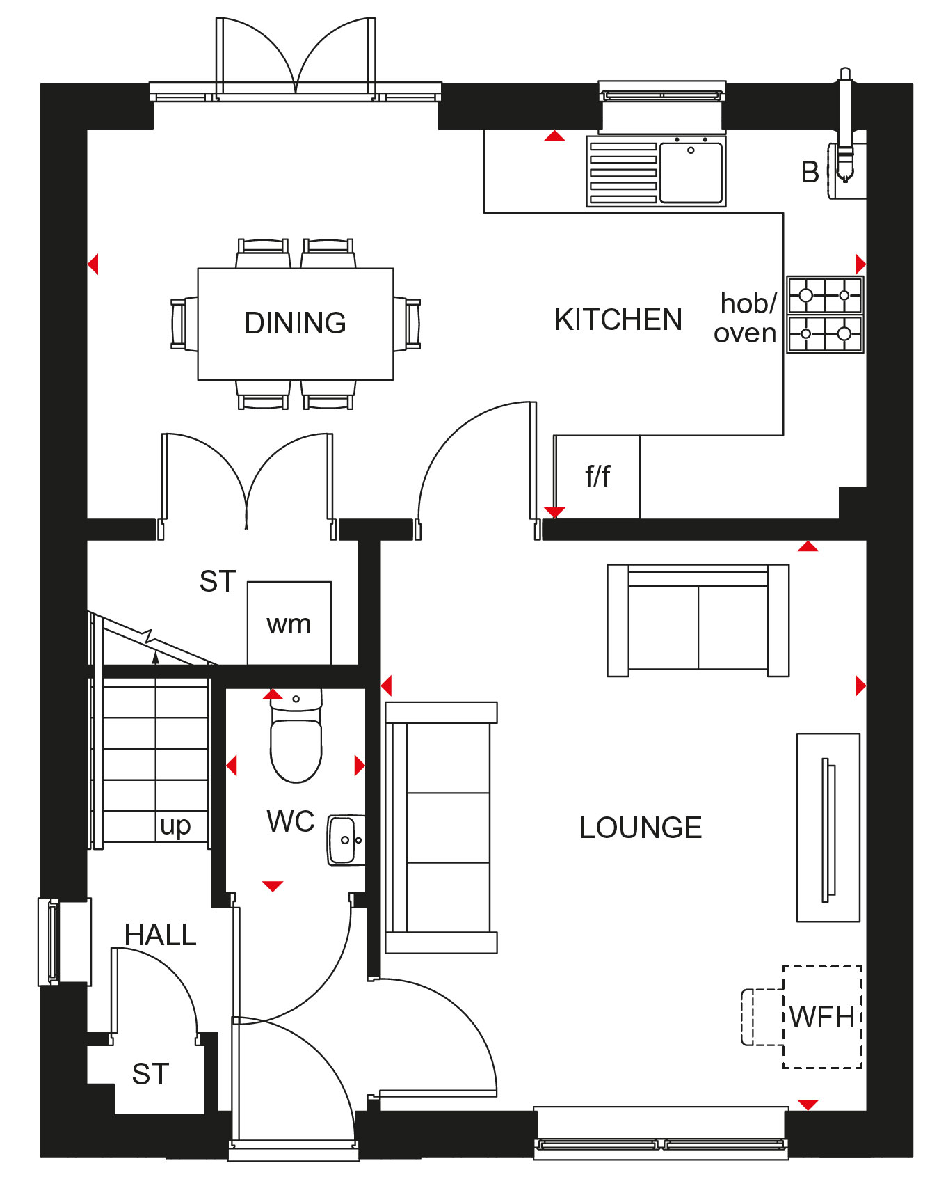 The Ascot features a light & airy open-plan kitchen with French doors leading to the garden, plus a handy utility room. A spacious lounge & a W.C complete the ground floor.