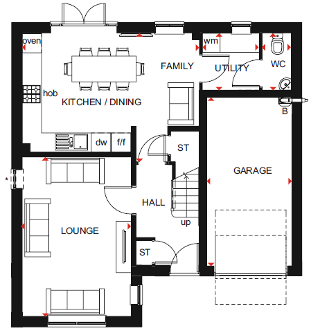 The Ascot features a light & airy open-plan kitchen with French doors leading to the garden, plus a handy utility room. A spacious lounge & a W.C complete the ground floor.