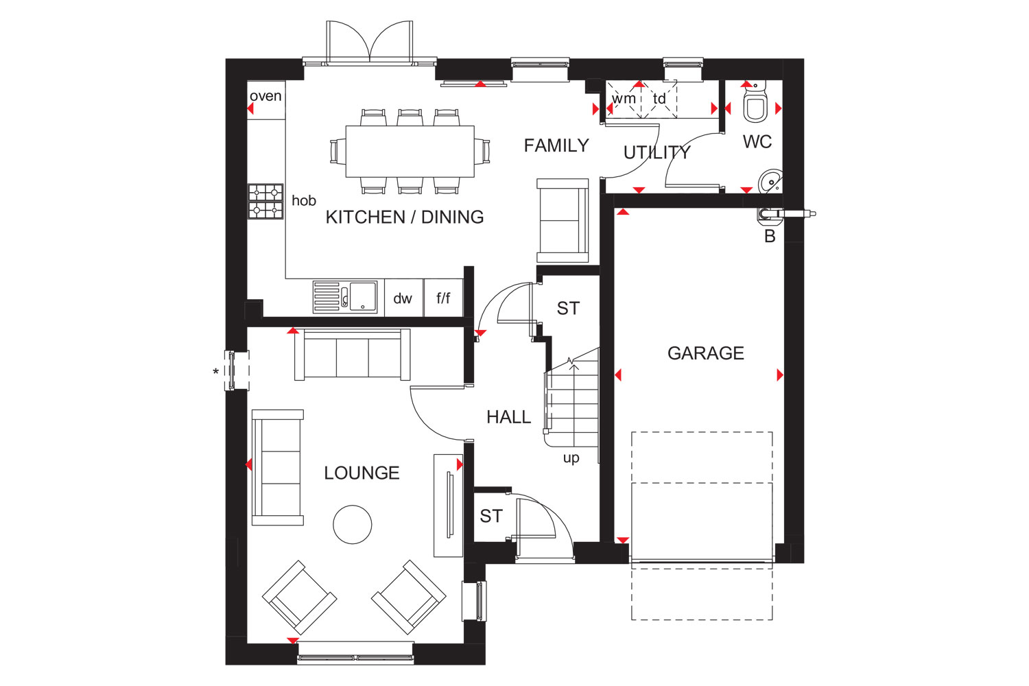 THE HALTON 4 BEDROOM HOME The modern kitchen diner is stylishly open-plan, with FRENCH DOORS leading to the garden. For quieter moments, the lounge offers room to relax. There is also a handy UTILITY ROOM and downstairs WC. Retreat to one of the FOUR DOUBLE BEDROOMS, including the main with en suite. An integral garage completes this energy-efficient home.