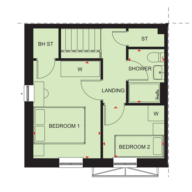 The ground floor of the stylish Amber 2 bedroom home offers contemporary open-plan living. The comfortable lounge seamlessly flows into the dining area and the kitchen. Upstairs there is a generously-sized main bedroom, along with a single bedroom which could alternatively be used as an office. A shower room completes this home.