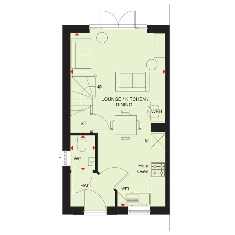 THE DENFORD 2 BEDROOM HOME This semi-detached home has an OPEN-PLAN LIVING area with a modern kitchen, a comfortable lounge and FRENCH DOORS to the garden. Upstairs, you`ll find a main bedroom with built in storage, a further double bedroom and a family bathroom. This home comes with PARKING FOR TWO CARS.