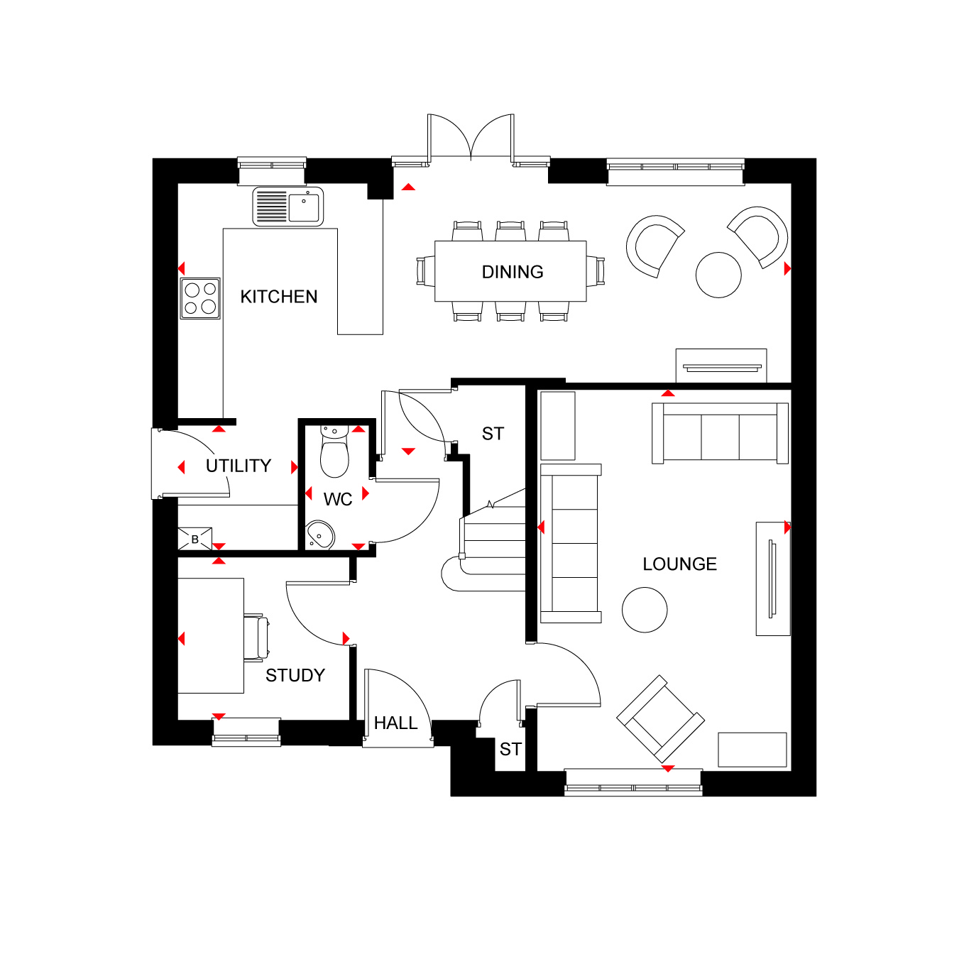This spacious four bedroom home has an impressive entrance hall. Your large open-plan kitchen/dining room opens to the garden through French doors. The comfortable lounge, separate study and utility room complete the ground floor. Upstairs you`ll find four double bedrooms, an en suite shower room and the family bathroom.