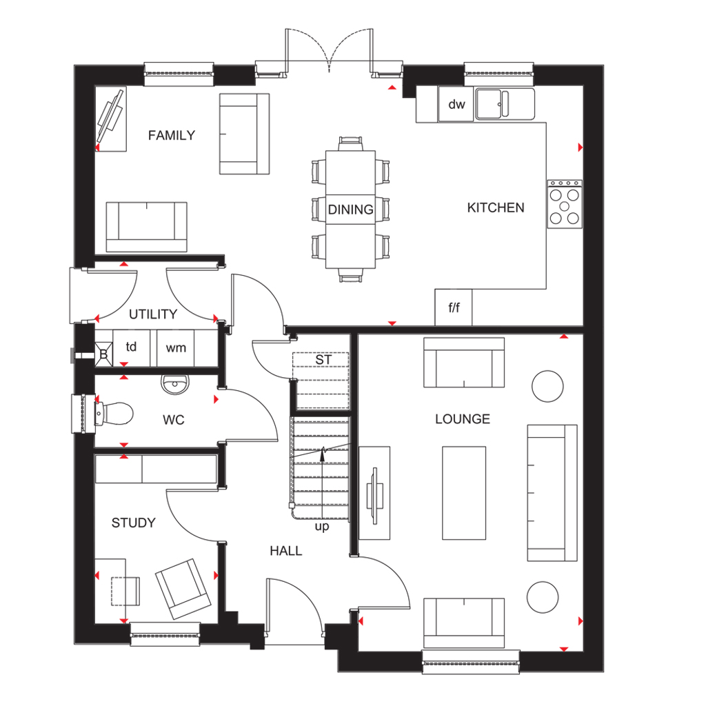 You`ll find plenty of space for the whole family in the Harris. Upstairs, there are four double bedrooms, with an en suite shower room to the main bedroom and a family bathroom.
