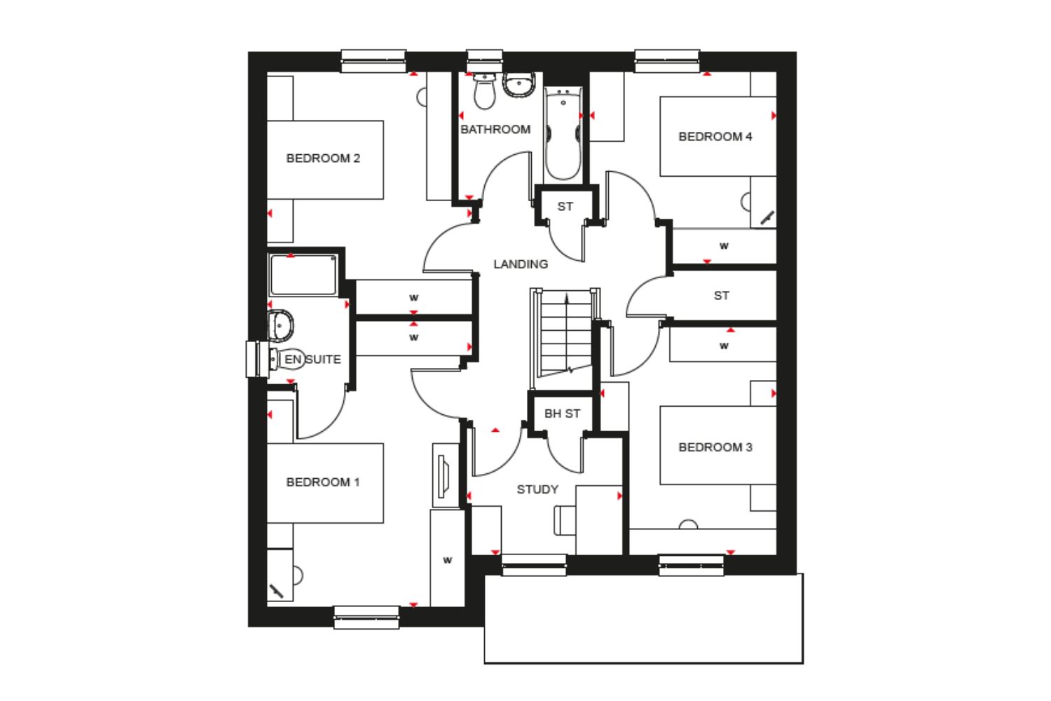 The Birkhill is a detached home with an integral garage. The hallway takes you to the lounge and the open-plan kitchen/dining/family area with French doors to the garden. A utility room and WC are located just off the kitchen. All four double bedrooms are upstairs with the main bedroom offering an en suite, as well as a family bathroom and separate study.