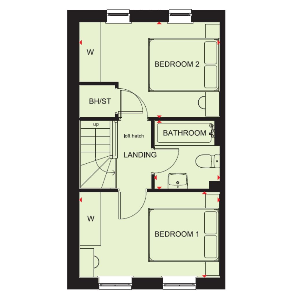 The free flowing living space in the Denford created a flexible terraced home, ideal for first-time buyers and downsizers. Upstairs are two double bedrooms and bathroom.