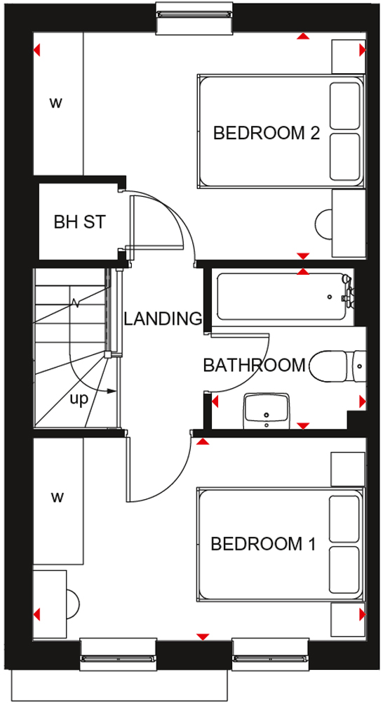 The free flowing living space in the Denford created a flexible terraced home, ideal for first-time buyers and downsizers. There are French doors leading to the rear garden, giving the open-plan lounge, dining area and fitted kitchen a bright and airy feeling. Upstairs are two double bedrooms and bathroom.