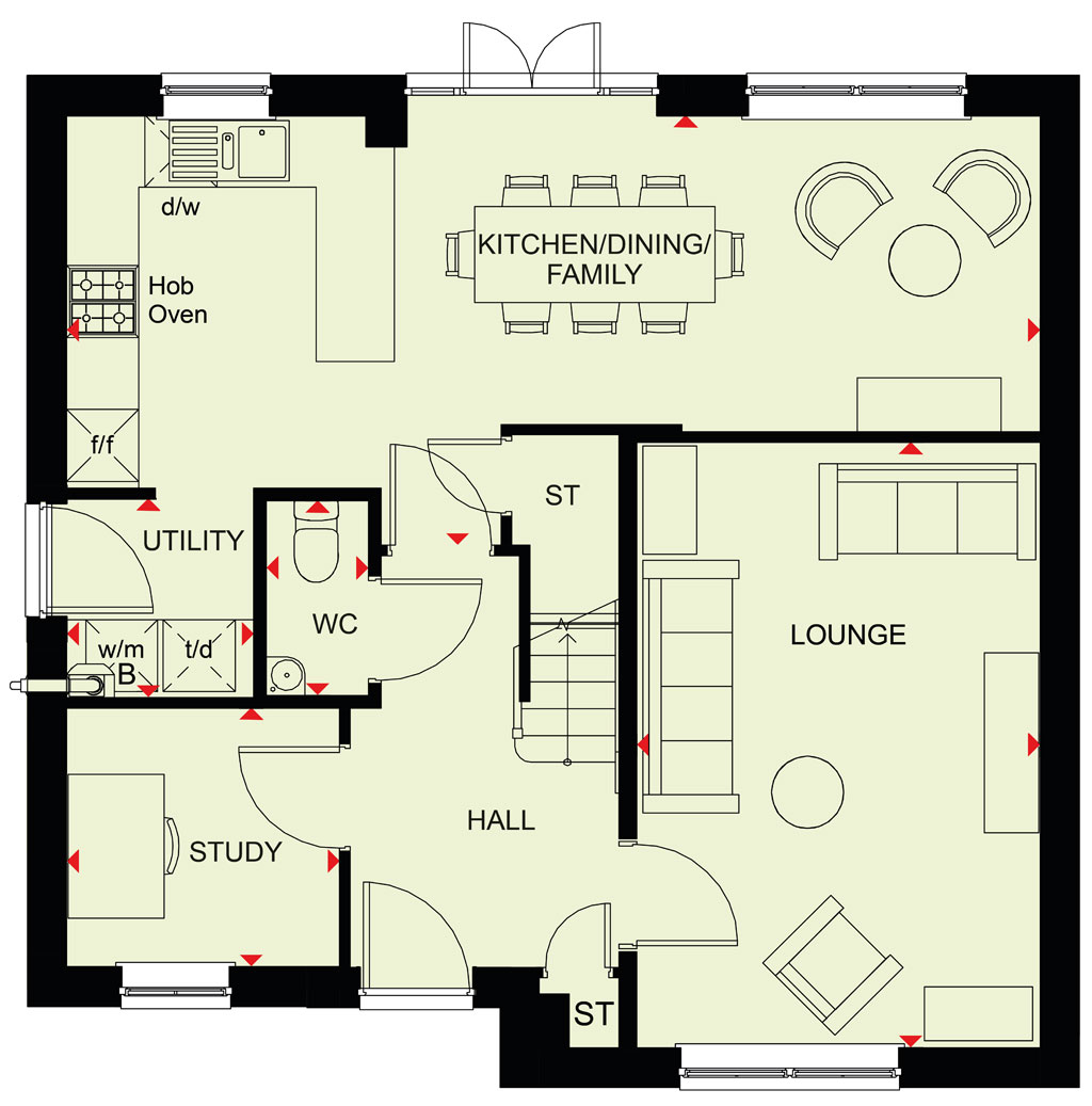 WE`LL CONTRIBUTE 23,599 TOWARDS YOUR MORTGAGE Plot 84 | The Radleigh | Fiddington Fields, Tewkesbury | Barratt Homes. There`s also a comfortable lounge, home office and some understairs storage.