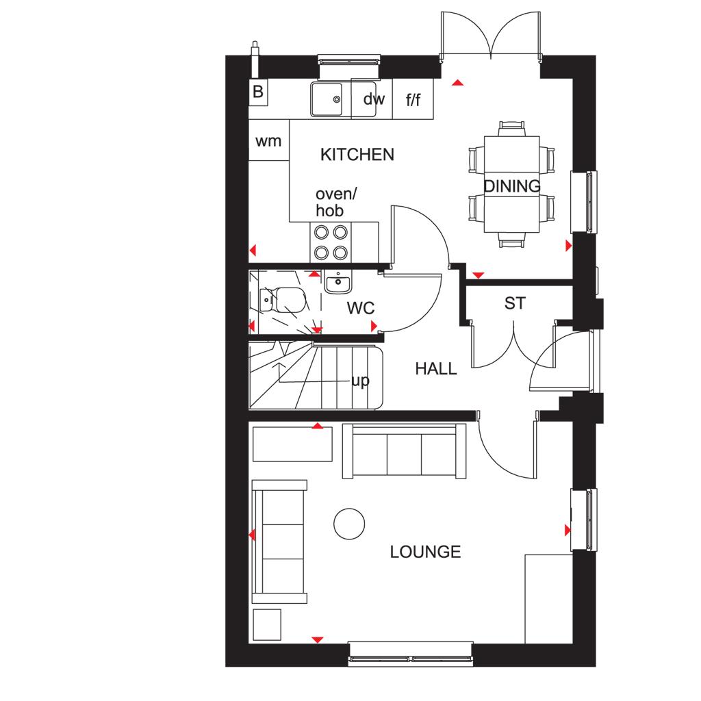 The Moresby is a spacious three bedroom home with ample storage options. This home has an open plan kitchen with French doors to the garden, a spacious lounge and a downstairs cloakroom.