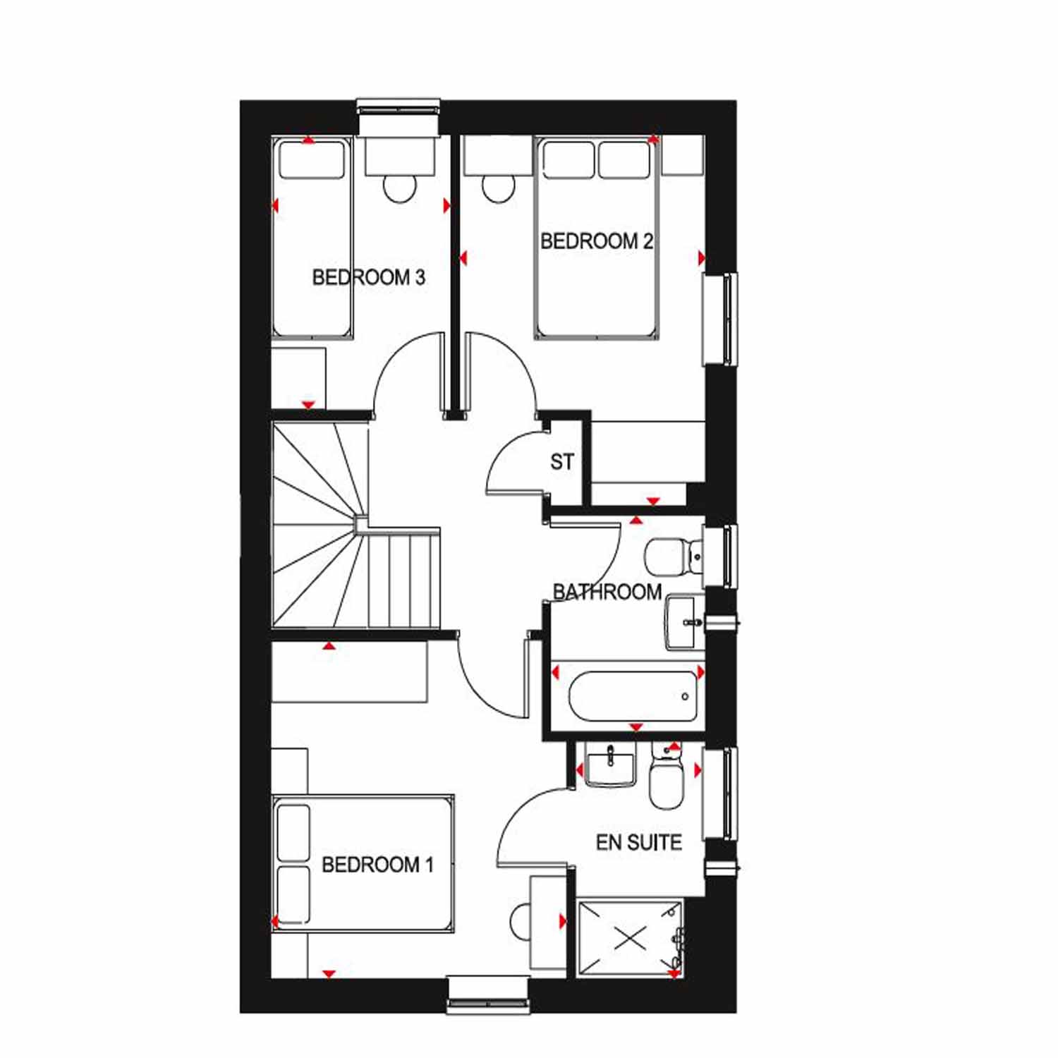 The Moresby is a spacious three bedroom home with ample storage options. This home has an open plan kitchen with French doors to the garden, a spacious lounge and a downstairs cloakroom. Upstairs you`ll find two double bedrooms, the main with an en suite, a single bedroom and a family bathroom.