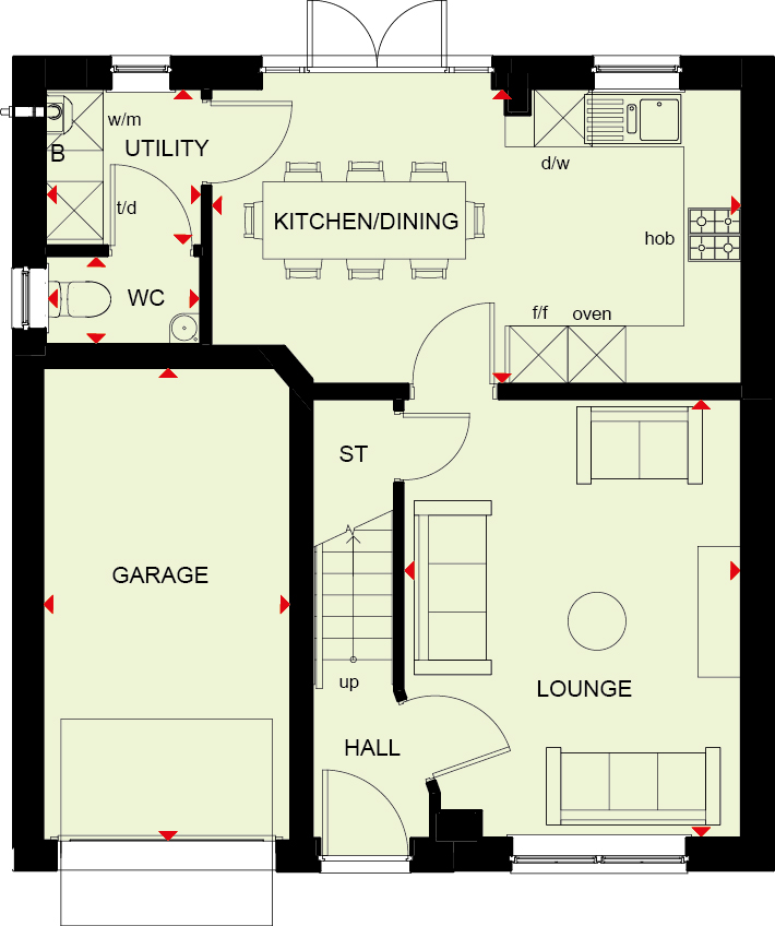 The Moresby is a spacious three bedroom home with ample storage options. This home has an open plan kitchen with French doors to the garden, a spacious lounge and a downstairs cloakroom.