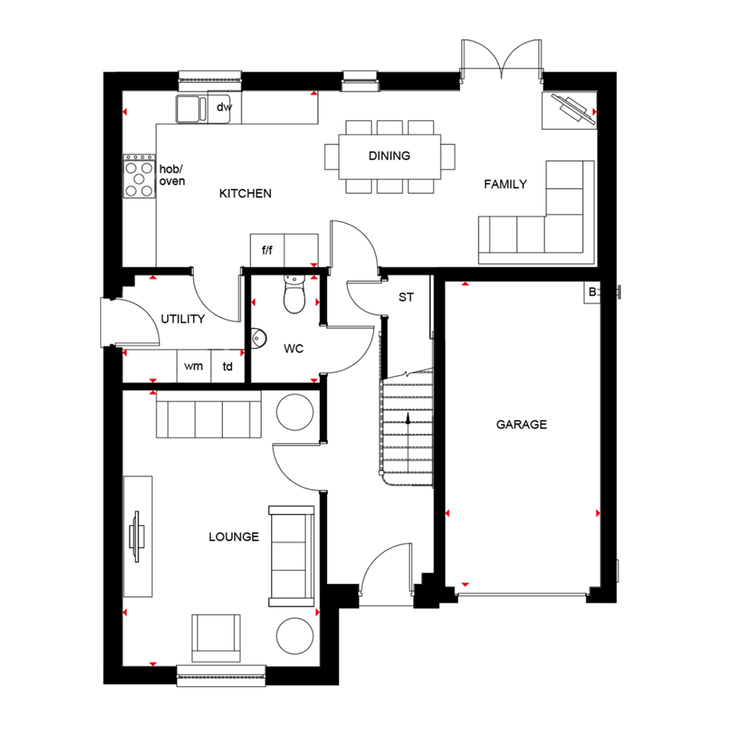 Discover the Campbell a large and bright family home. Downstairs you`ll find the large open-plan kitchen/dining area, including French doors leading out to the back garden.