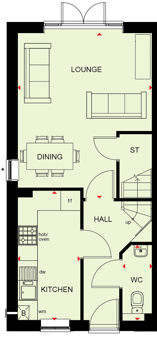 The Eskdale is a spacious three bedroom detached home. Downstairs, the entrance hall with cloakroom opens into a fully fitted kitchen and dining room.