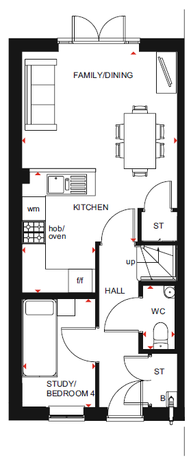The Kingsville is a flexible 3 bed THREE-STOREY home with a ground floor STUDY. Downstairs is an OPEN PLAN KITCHEN with family and DINING AREA, with FRENCH DOORS to the GARDEN - great for family times.