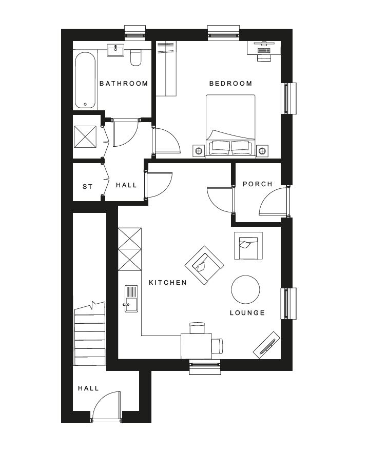 The Lutterworth is a 3 bedroom detached family home. With an open plan kitchen/dining area and French doors to the garden. The spacious dual-aspect lounge area also has it`s own French doors.