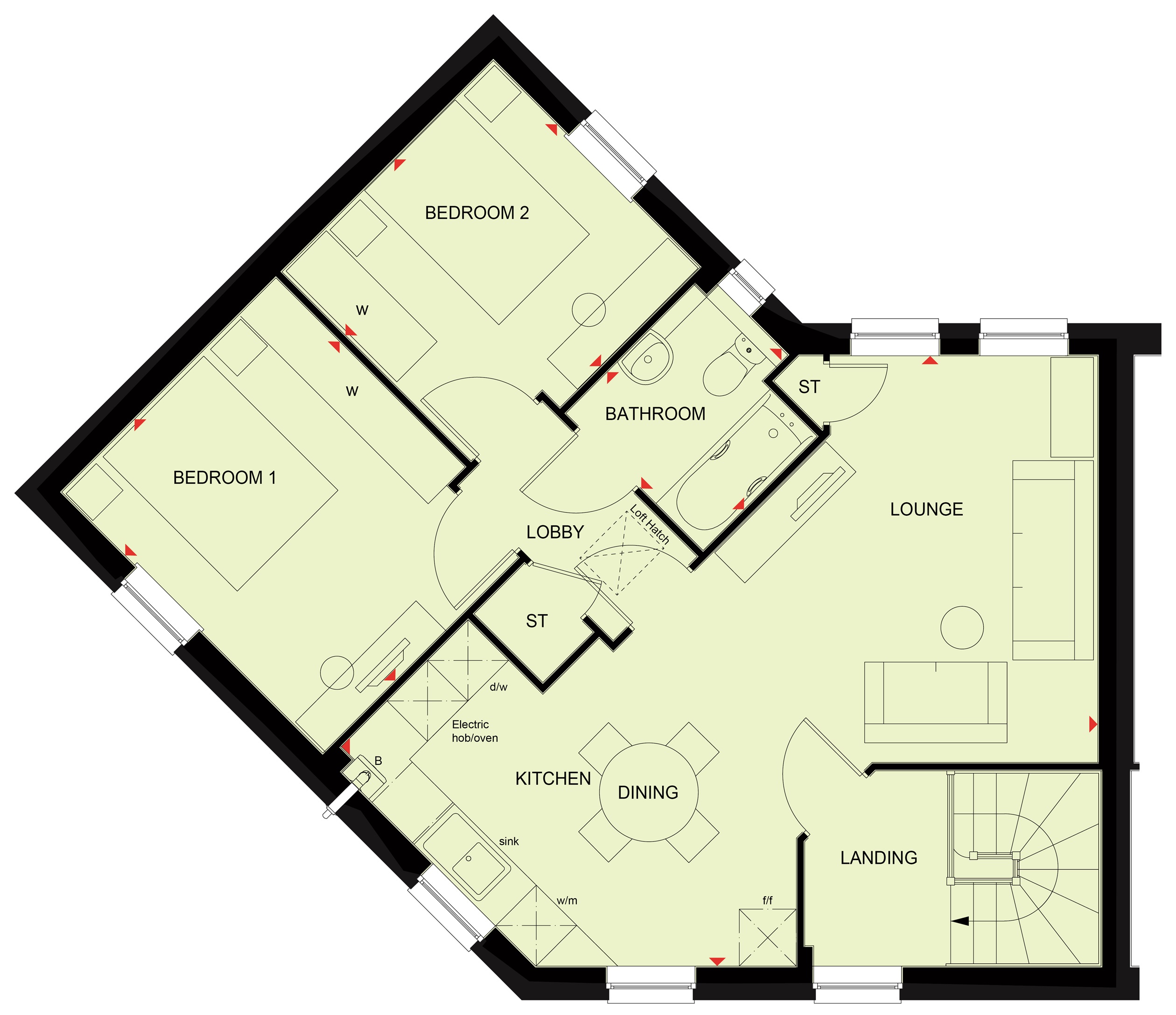This firstfloor two bedroom apartment features a bright openplan kitchen, dining and lounge space. It offers two generous double bedrooms and a stylish family bathroom. Thoughtfully designed with great storage and a flowing layout, it`s a spacious, contemporary home perfect for easy, modern living. 2 parking spaces Plot 428 | Leiston | New Lubbesthorpe Discover the perfect balance of stunning rural scenery and urban living at this thriving development. Nestled in 250 acres of green space and located just 15 minutes from bustling Leicester city centre is a range of uniquely designed homes boasting excellent energy-efficiency.