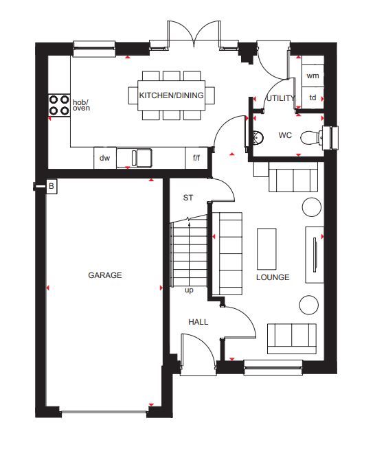 The Balloch is a flexible four bedroom home offering open-plan kitchen/dining/family area featuring French doors to the back garden. This home is complete with a detached single garage.