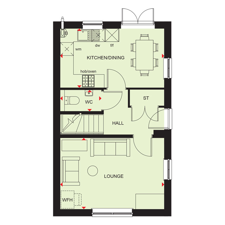 THE DENFORD, 2 BEDROOM HOME This semi-detached home has an open-plan living area with a modern kitchen, a comfortable lounge and French doors to the garden.