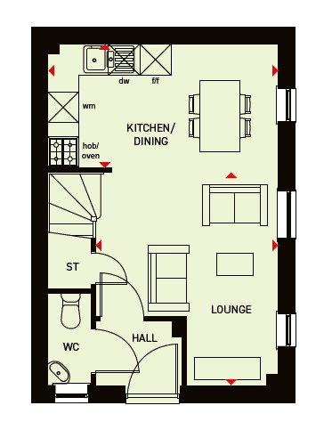 The ground floor of the stylish Tulip 2 bedroom home offers contemporary open-plan living. The comfortable lounge seamlessly flows into the dining area and the kitchen.