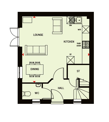 The ground floor of the stylish Tulip 2 bedroom home offers contemporary open-plan living. The comfortable lounge seamlessly flows into the dining area and the kitchen. Upstairs there is a generously-sized main bedroom, along with a single bedroom which could alternatively be used as an office. A bathroom completes this home.