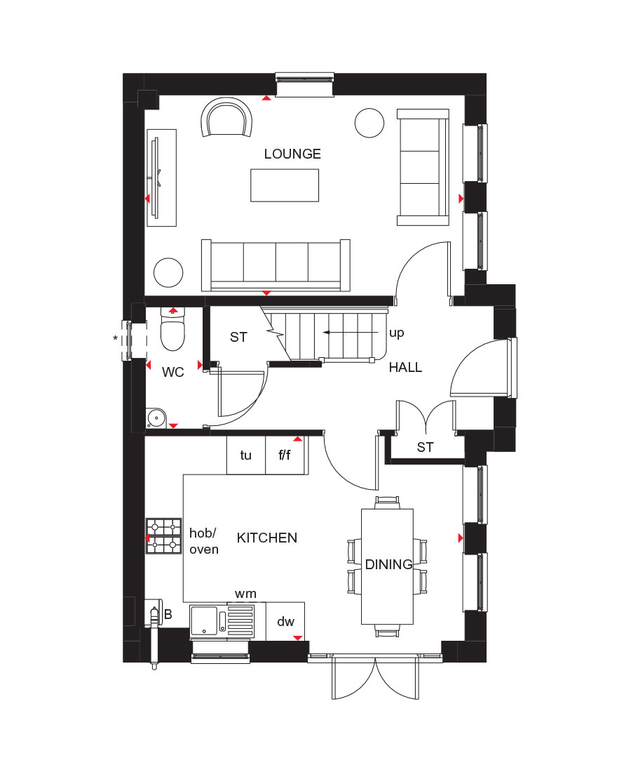9,990 DEPOSIT BOOST plus FLOORING. The Denford is a popular choice for FIRST-TIME BUYERS, with its contemporary style. French doors lead to the garden.