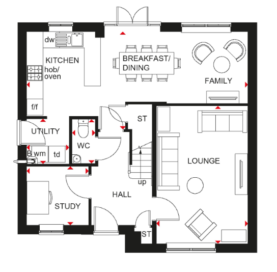 PLOT 108 THE RIPON AT OVERSTONE GATE - 21,050 DEPOSIT CONTRIBUTION* - UPGRADED KITCHEN Featuring an open-plan kitchen diner with utility room, wc and French doors onto the garden.