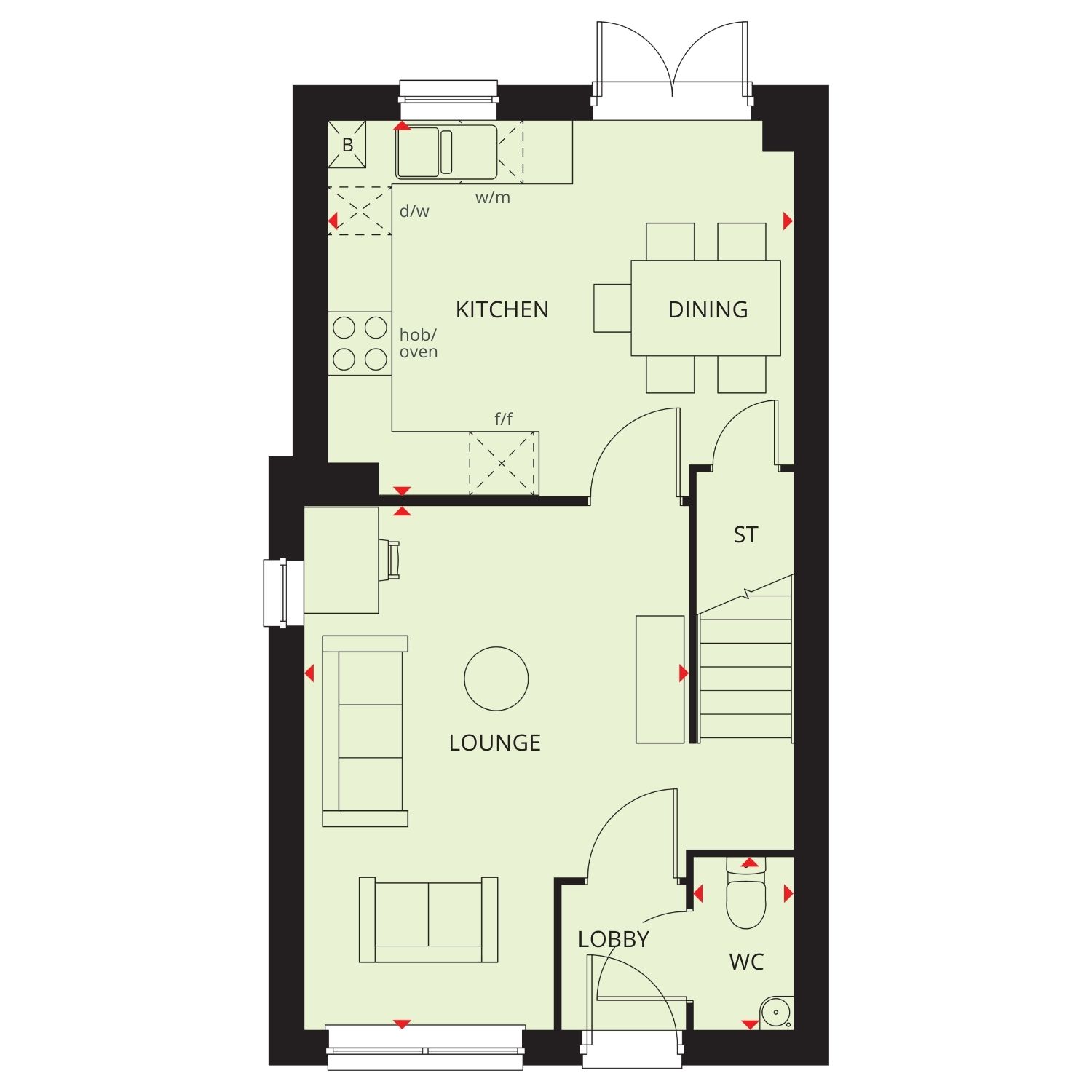 PLOT 232 - MORESBY- AT TOWCESTER GRANGE - The Moresby features an open-plan dining kitchen with French doors leading out to a South-West facing garden and a separate lounge.