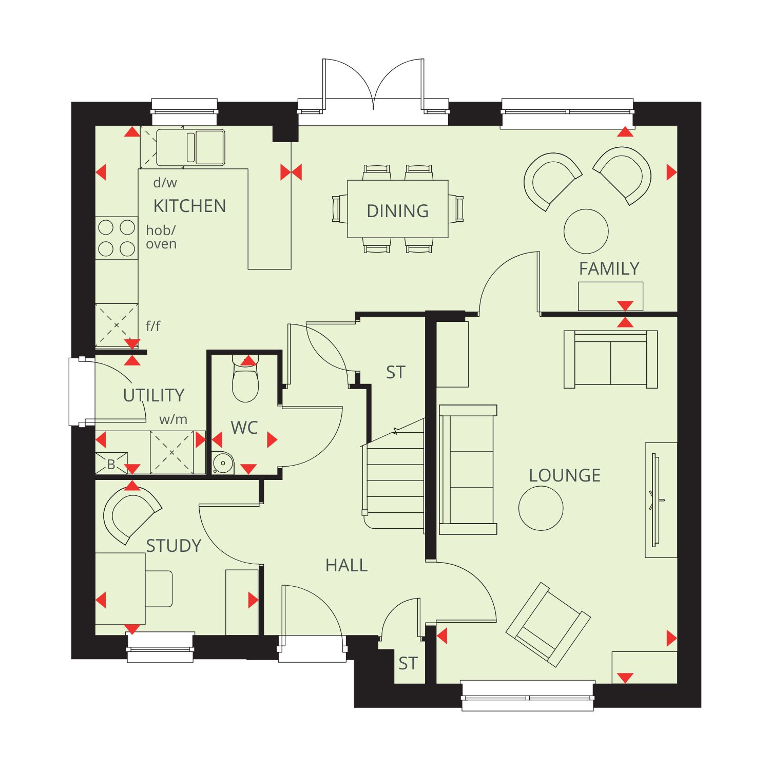 • Open-plan kitchen, dining and family room