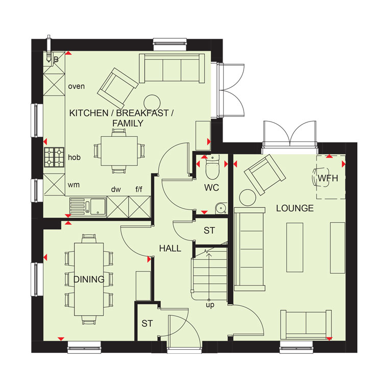 Located on a CORNER, The Bittern home offers a bright OPEN-PLAN kitchen. The rear garden can be accessed by two sets of FRENCH DOORS onto the rear garden.