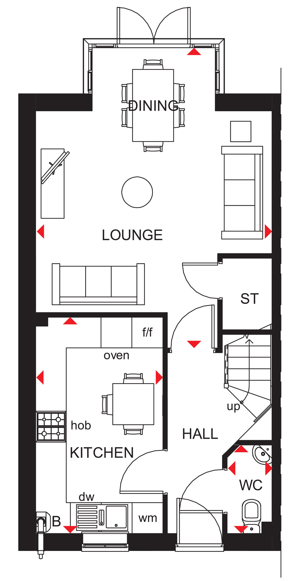 The Ennerdale is a beautiful three bedroom home. The welcoming hallway has a cloakroom and useful storage area. Large windows and French doors light up the open-plan kitchen/diner and spacious lounge.