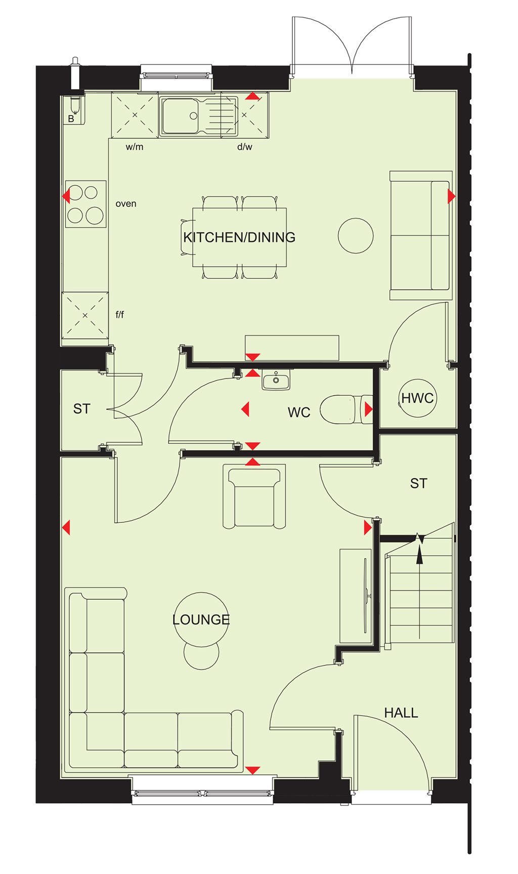 Enjoy meal times with your family in the open plan kitchen & dining space of our 3 bed home, the space is light & airy thanks to the French doors leading to the garden.