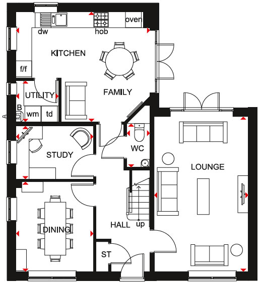 ***WE`LL BUY YOUR EXISTING HOME WITH PART EXCHANGE - POP IN AND CHAT TO OUR SALES ADVISERS*** Designed for flexible living, the downstairs of this home features an open plan kitchen and family room with utility, opening to the garden through French doors. A separate lounge opens to the garden along with a study and separate dining room completes the ground floor. Upstairs you will find the spacious main bedroom including an en suite, two further double bedrooms, a single bedroom and family bathroom.