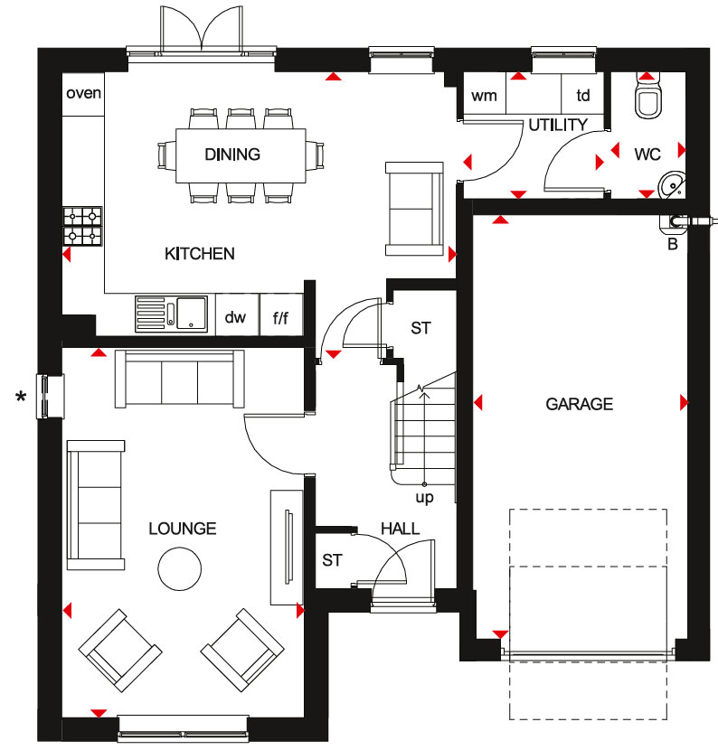 • Single integral garage